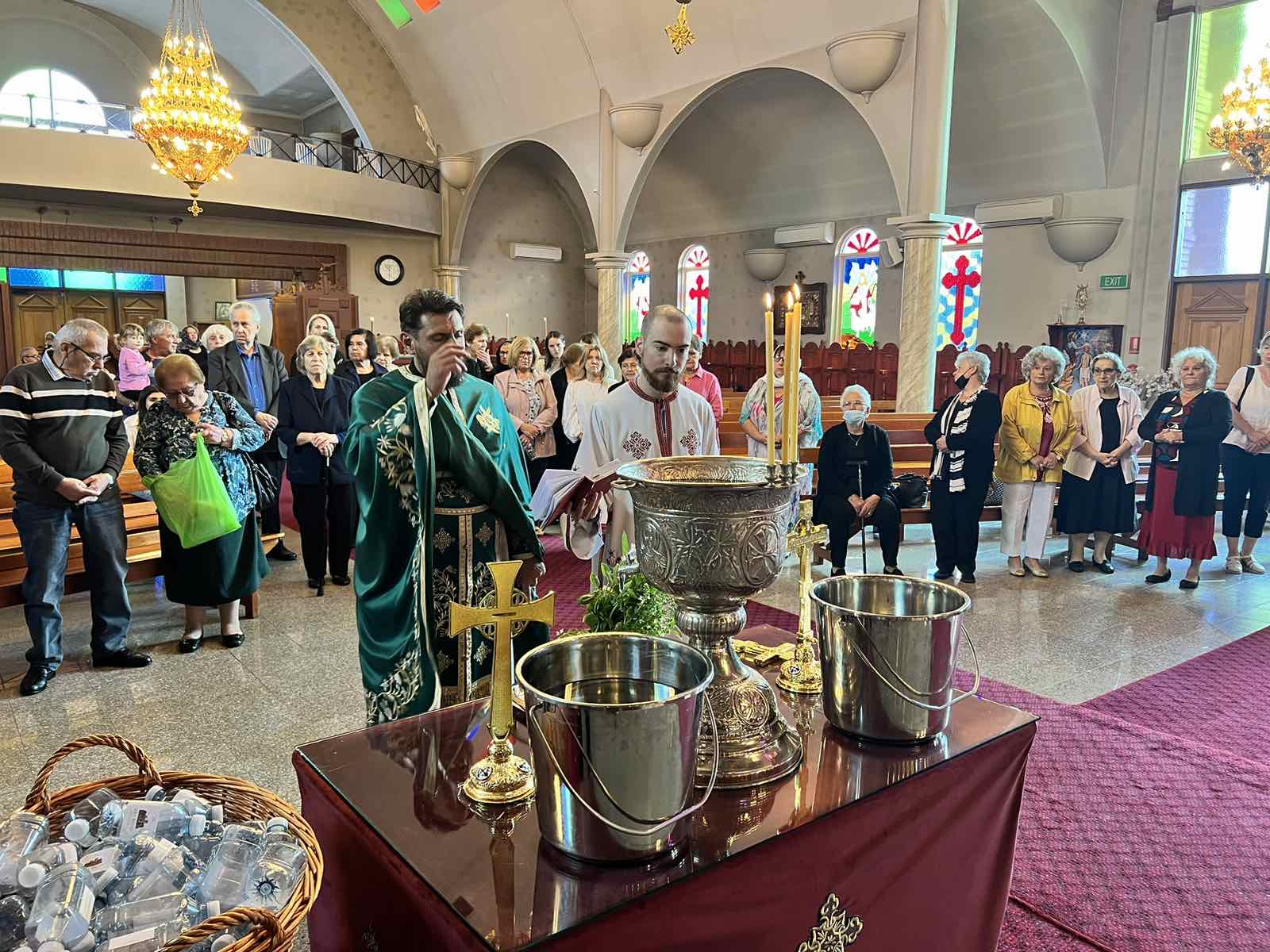 На 18. 01. 2024 година, кога Светата Црква го празнува празникот +Водокрст и споменот на Преподобната мајка Синклитикија; Светиот свештеномаченик Теопемт и маченикот Теона; Светиот пророк Михеј I; Преподобна Аполинарија, во црковната општина „Свети Георгиј и Пресвета Богородица“ во Епинг, старешината на храмот, јерејот Климент Станковски служеше Царски часови со Света Василиева Литургија.