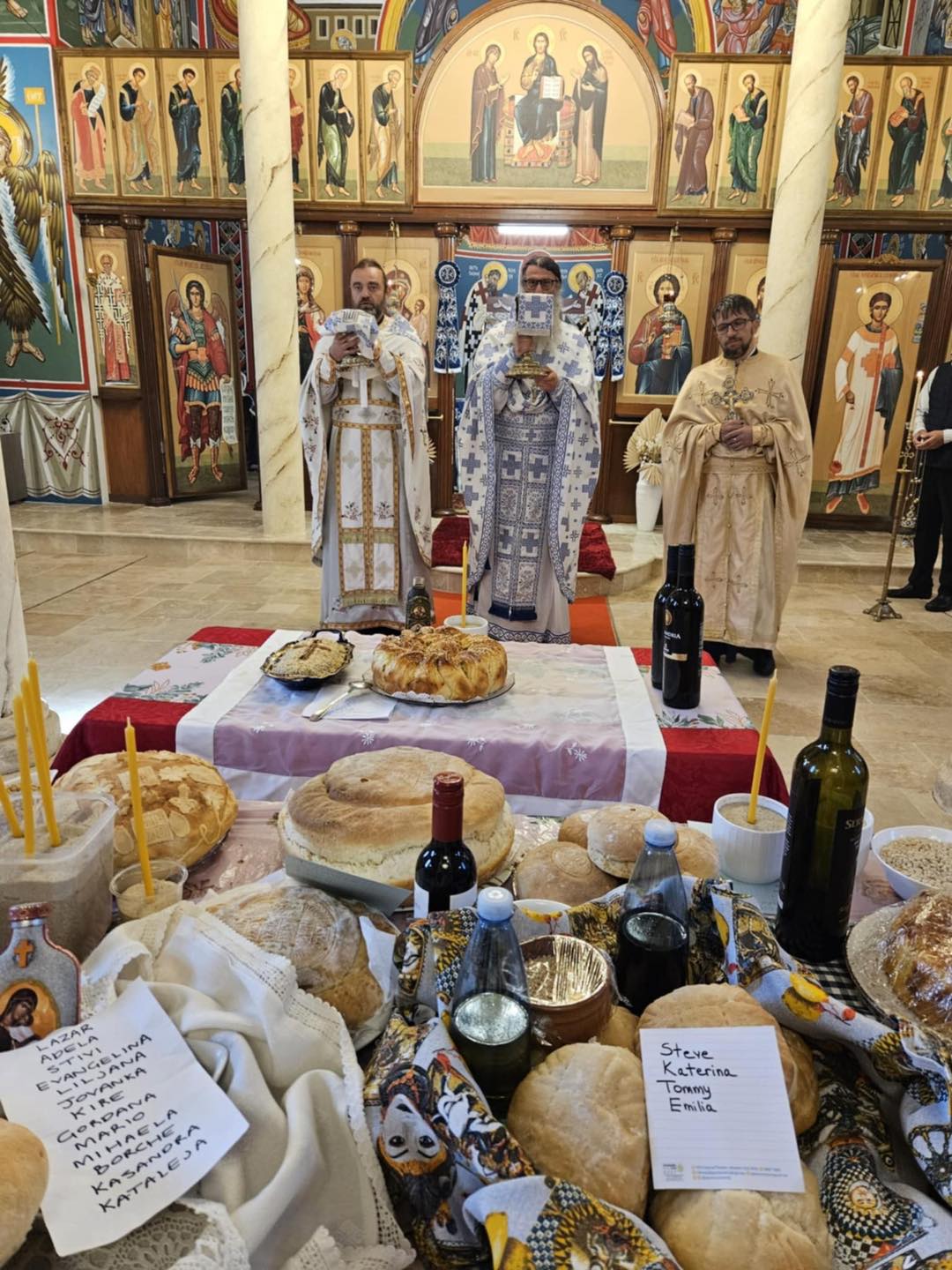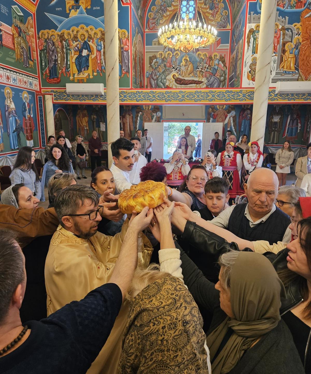 По Светата Литургија беа прекршени славските лебови и беше приредена трпеза по повод чествувањето на храмовиот празник.