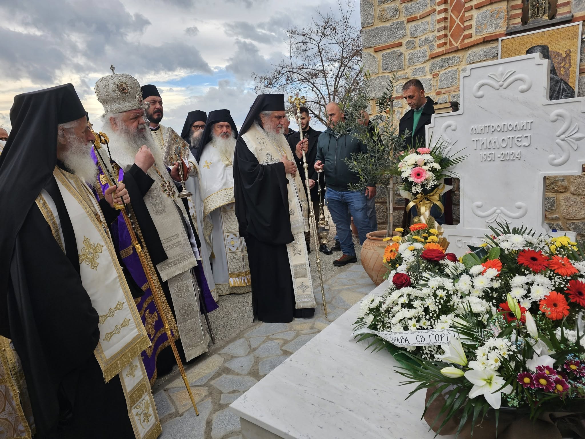 На ден 03. 01. 2025 година кога се навршија 40 дни од блаженото заспивање во Господа на Митрополиот Дебарско-кичевски и Администратор Австралиско-сиднејски Тимотеј во Плаошкиот манастир во Охрид се отслужи Света Архиерејска заупокоена Литургија и 40 дневен помен за покој на душата на блаженоупокоениот Митрополит Тимотеј.