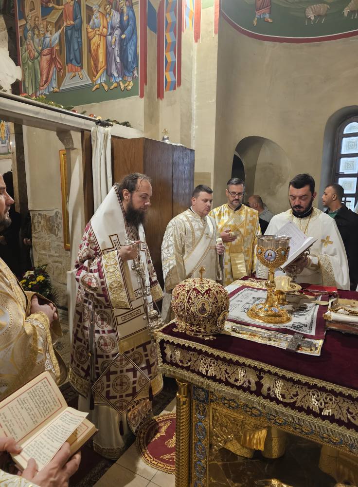 Со Литургијата чиноначалствуваше викарниот Епископот стобиски г. Јаков во сослужение на повеќемина свештенослужители.