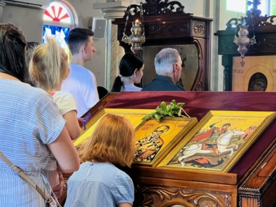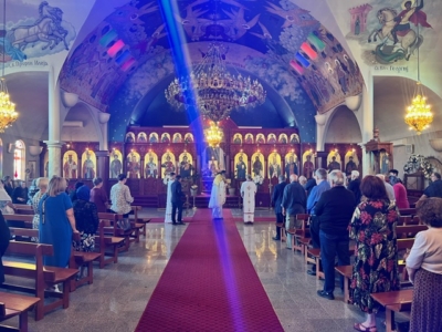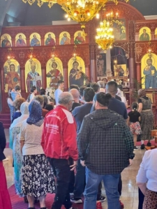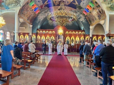 На 04. 02. 2024 година, во 35 недела по Педесетница, кога Светата Црква ги празнува Соборот на руските новомаченици и исповедници; Светиот апостол Тимотеј; Преподобниот маченик Анастасиј, во црковната општина „Свети Георгиј и Пресвета Богородица“ во Епинг, отец Гаврил (Галев) служеше Света Златоустова Литургија.