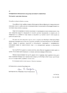 БЛАГОДАРСТВЕНО ПИСМО ДО ЕУО ОД ПРОТОЈЕРЕЈ-СТАВРОФОР СПАСЕ СТЕФАНОВСКИ