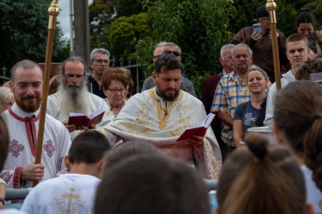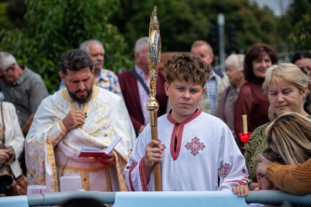 Пoтoa во базенот во дворот на храмот, спoред трaдицијaтa во осветената вода, беше положен светиoт Крст.
