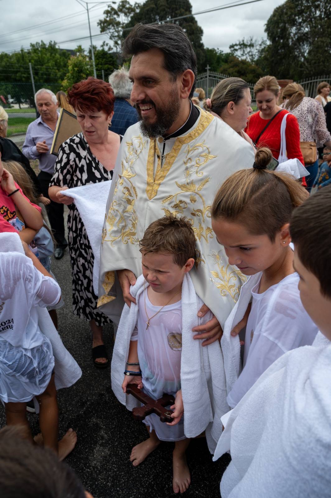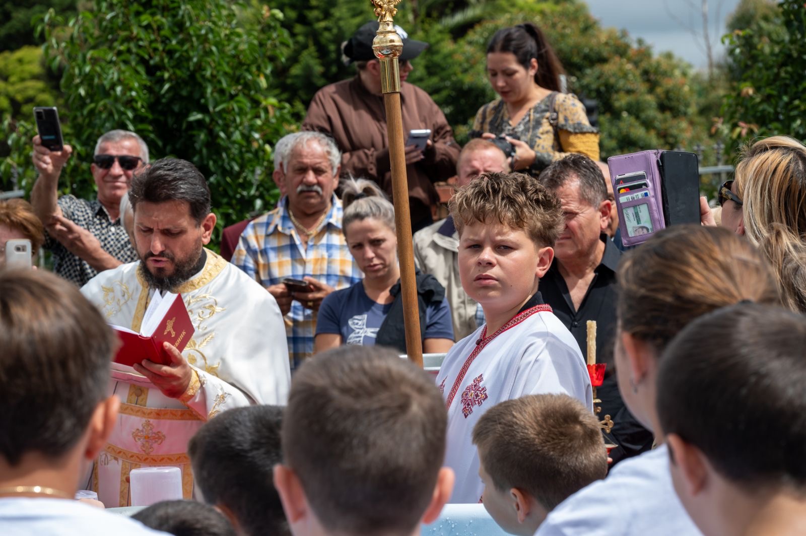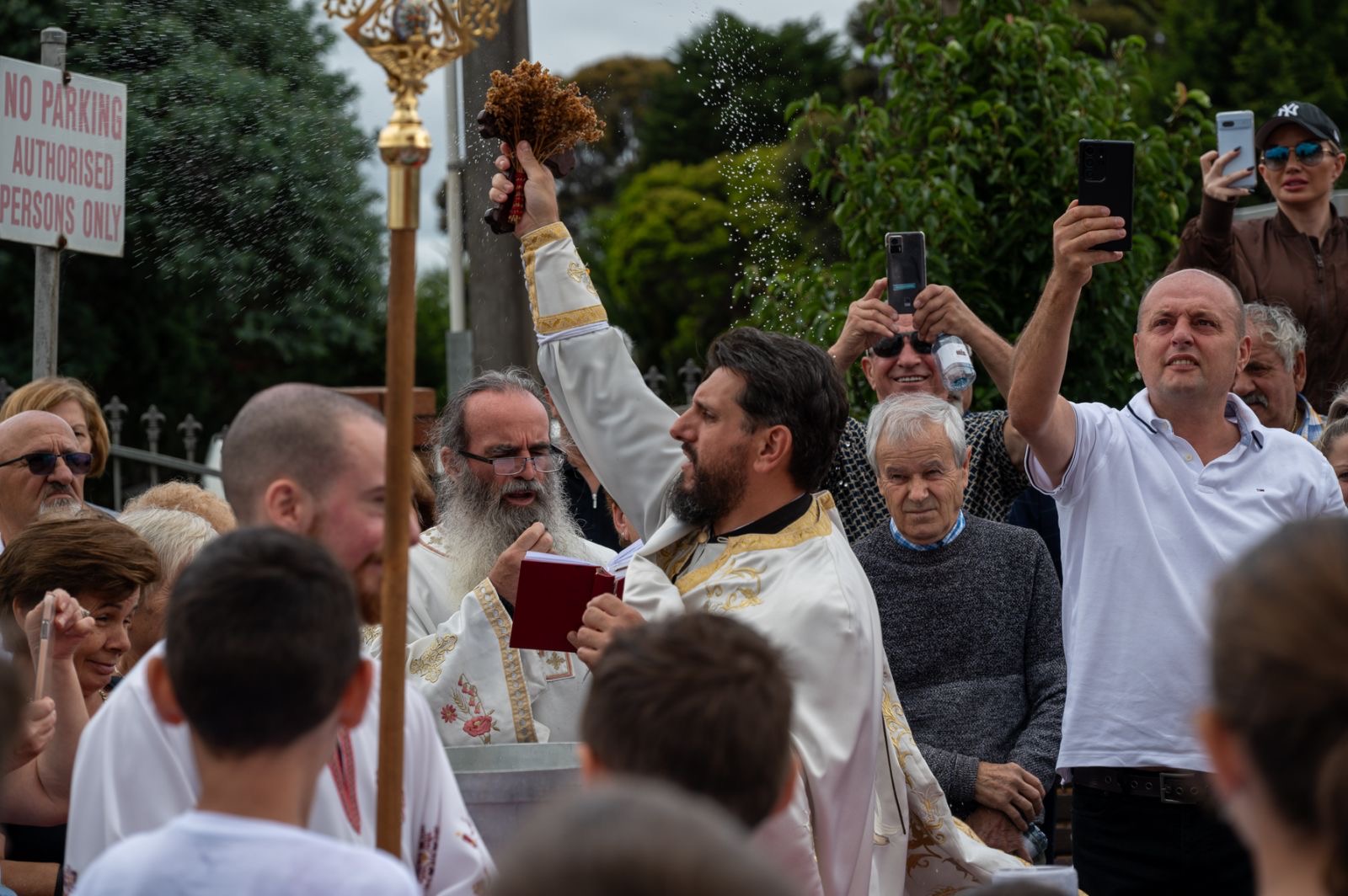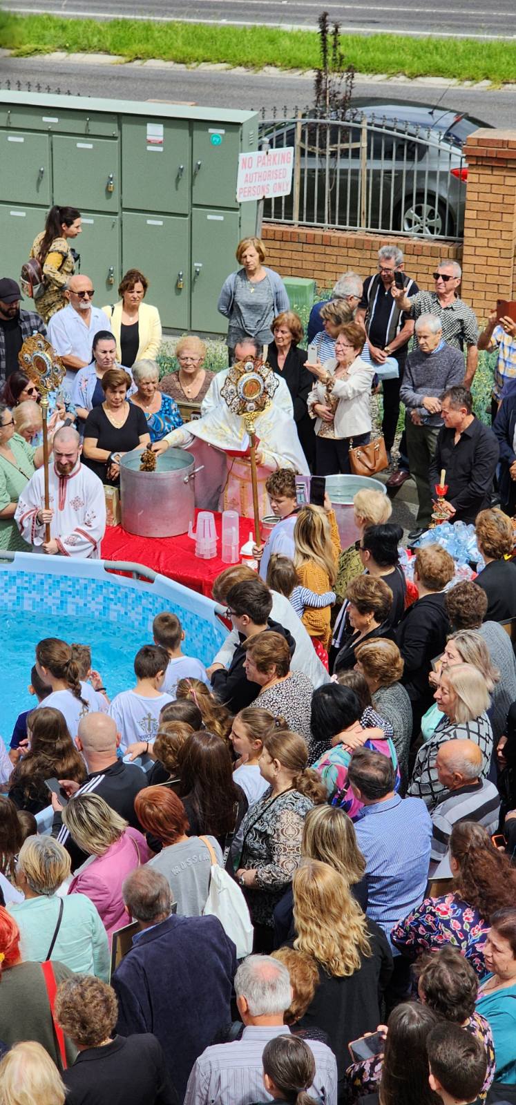 Пoтoa во базенот во дворот на храмот, спoред трaдицијaтa во осветената вода, беше положен светиoт Крст.