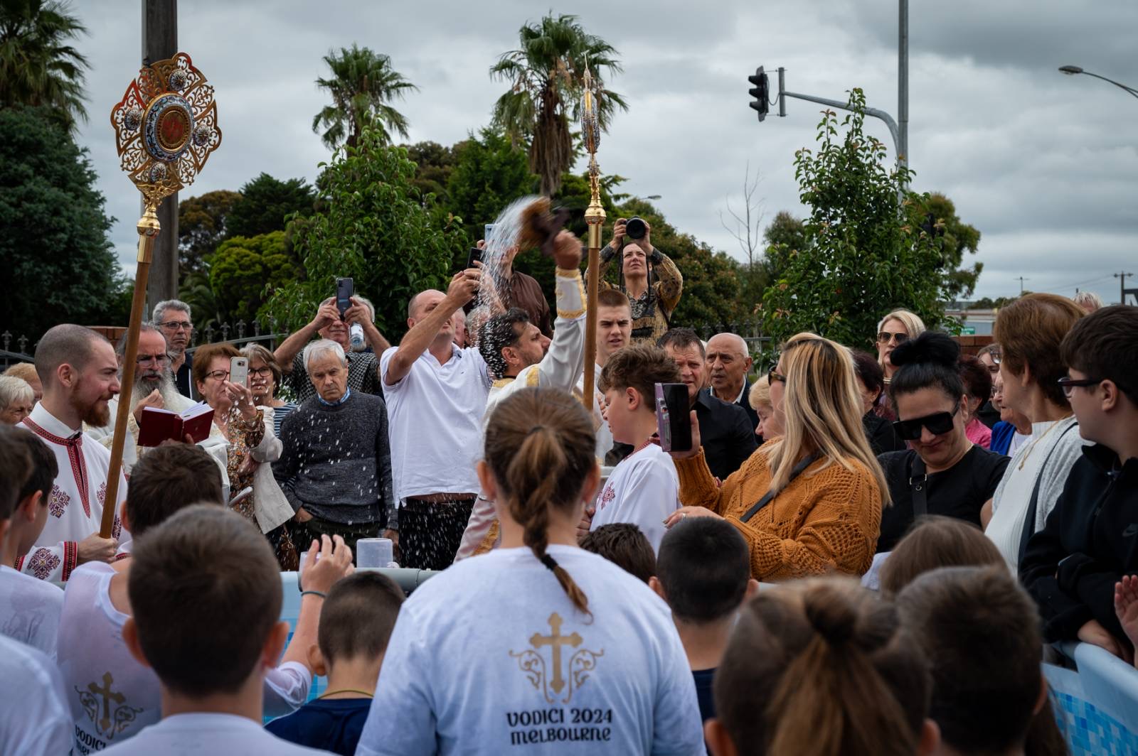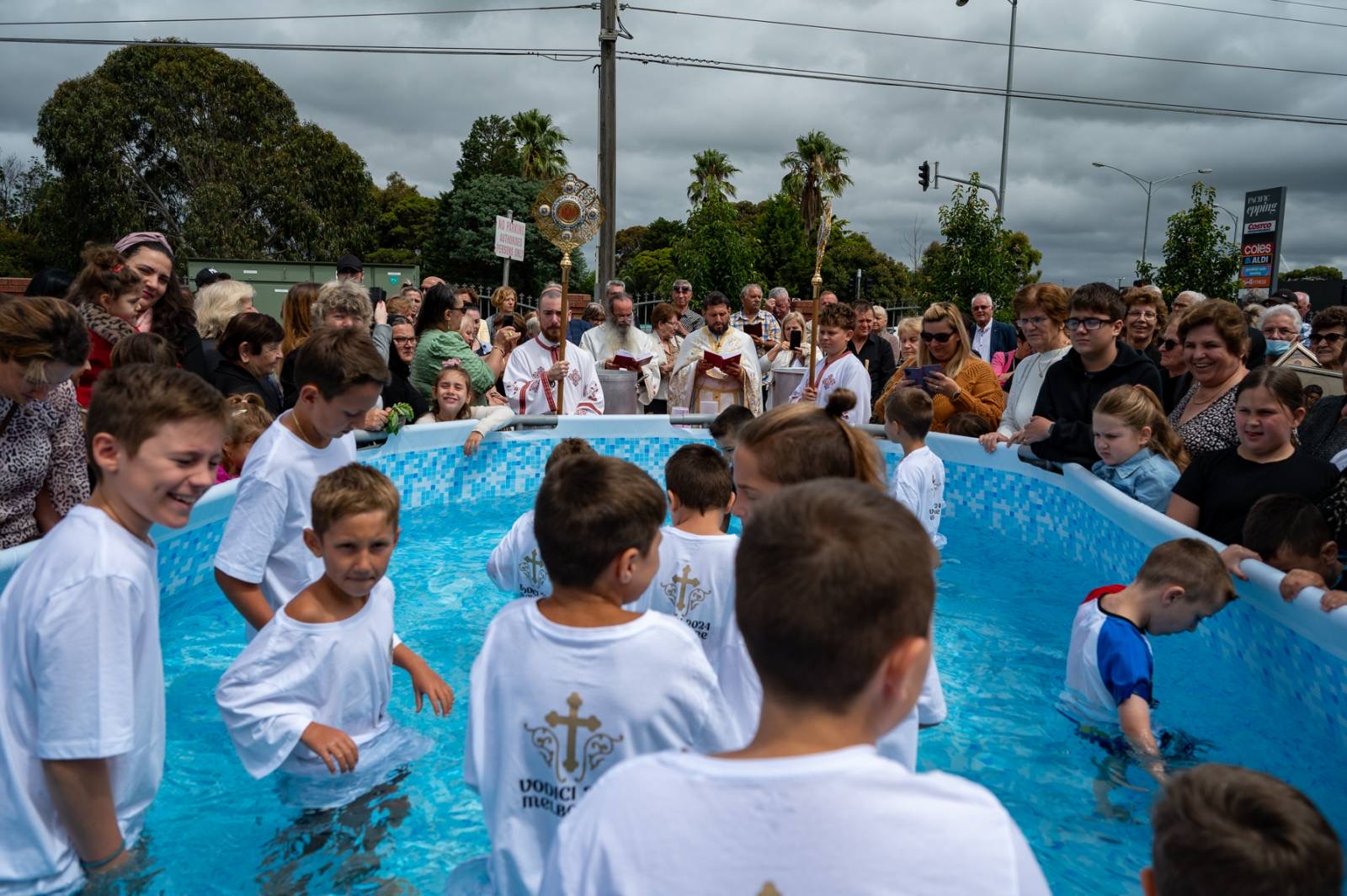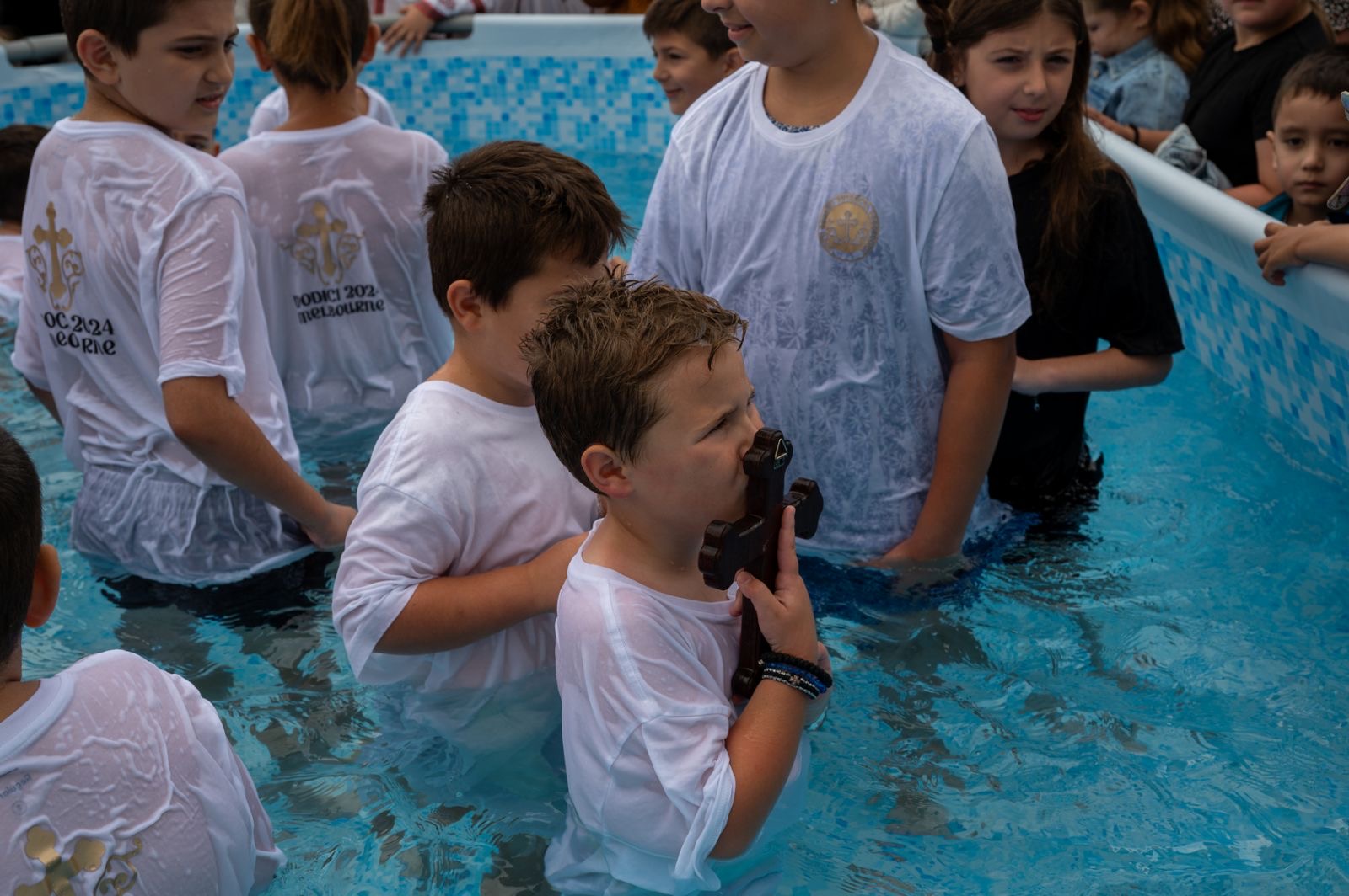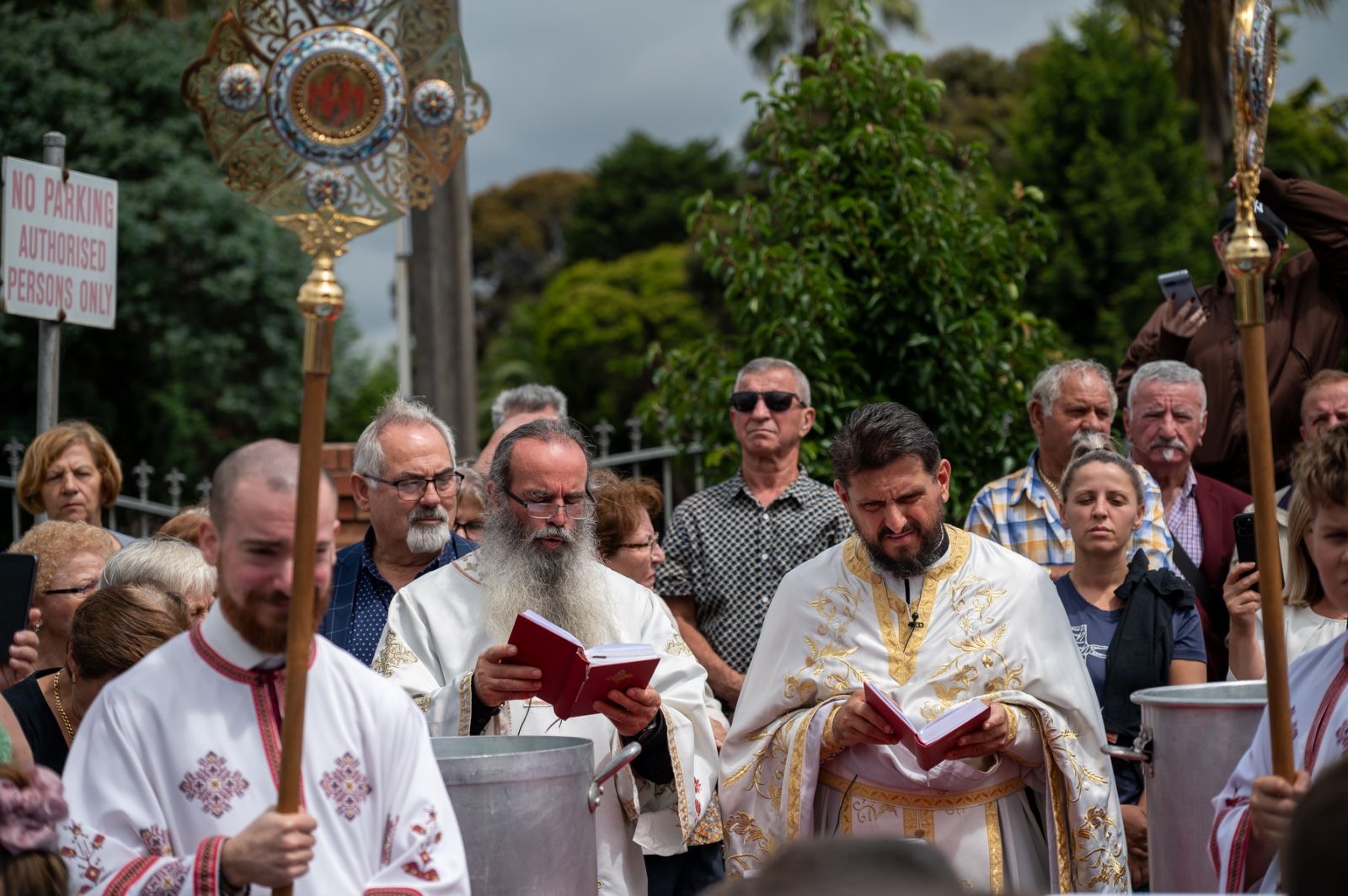 Пoтoa во базенот во дворот на храмот, спoред трaдицијaтa во осветената вода, беше положен светиoт Крст.