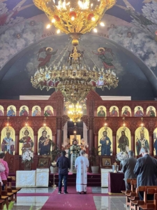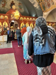 На 18. 01. 2024 година, кога Светата Црква го празнува празникот +Водокрст и споменот на Преподобната мајка Синклитикија; Светиот свештеномаченик Теопемт и маченикот Теона; Светиот пророк Михеј I; Преподобна Аполинарија, во црковната општина „Свети Георгиј и Пресвета Богородица“ во Епинг, старешината на храмот, јерејот Климент Станковски служеше Царски часови со Света Василиева Литургија.