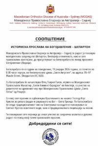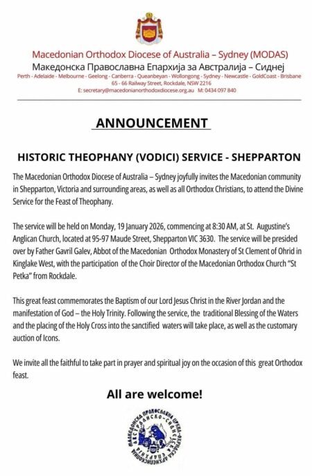 ИЗВЕСТУВАЊЕ ЗА ИСТОРИСКА ПРОСЛАВА НА БОГОЈАВЛЕНИЕ (ВОДИЦИ) ВО ШЕПАРТОН! / ANNOUNCEMENT: HISTORIC THEOPHANY (VODICI) CELEBRATION IN SHEPPARTON!