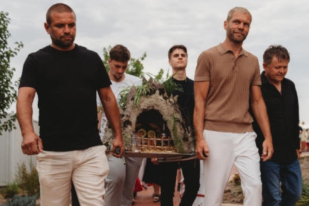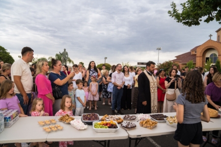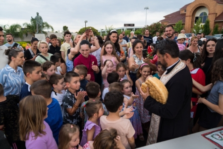 Духовната радост продолжи во црковниот двор, каде што се благослови празничниот колач со паричка.