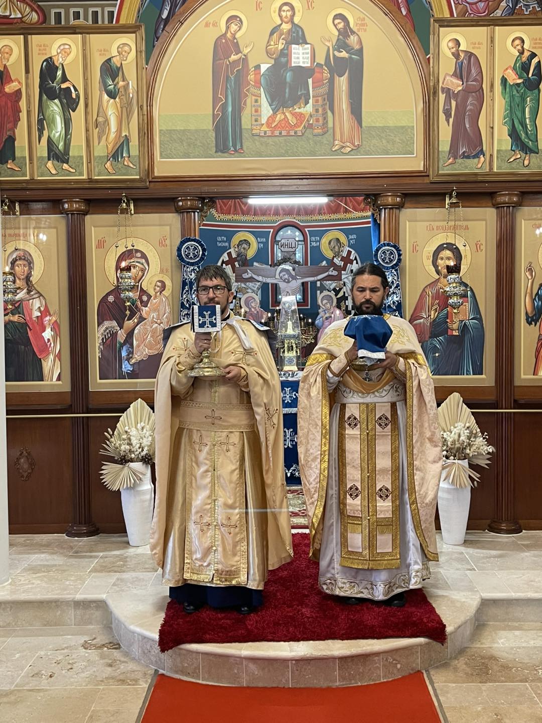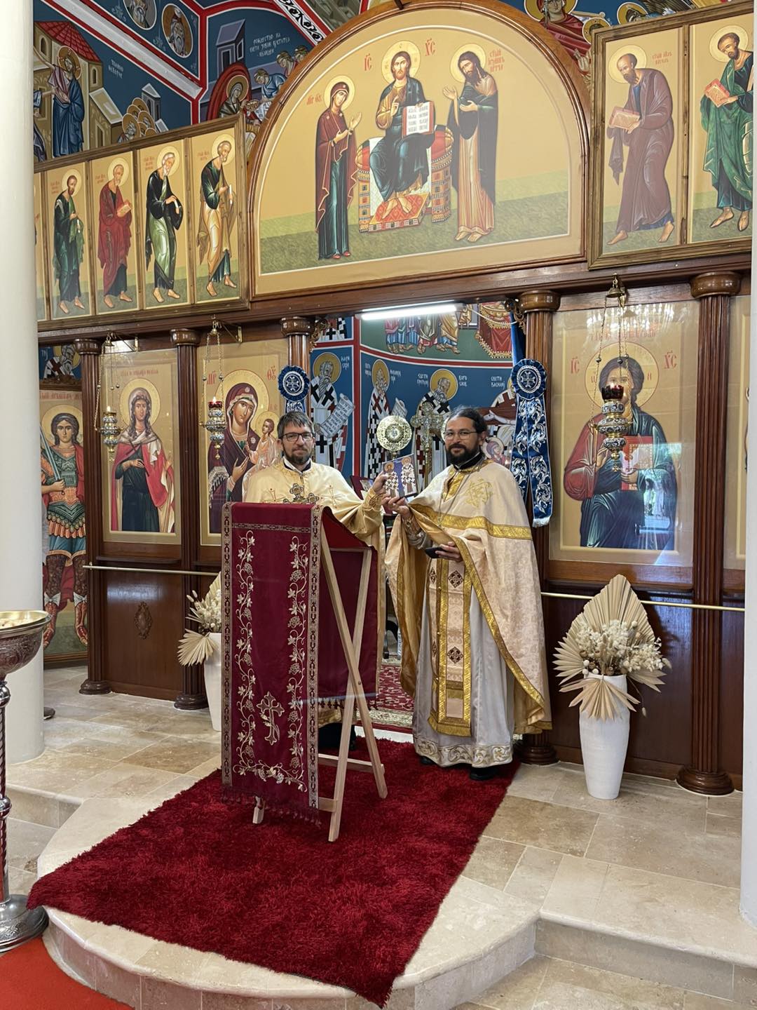 On 6 April 2025, on the Fifth Sunday of Great Lent – the Sunday of Saint Mary of Egypt, when the memory of Saint Artemon, Bishop of Seleucia; Venerable Jacob the Confessor; the Holy Hieromartyr Parthenios, Patriarch of Constantinople; the commemoration of the miracle at the Pechersk Monastery; and Venerable Zacharias is celebrated – at the church community of “Sveta Nedela” in Gold Coast, the head priest of the church, Father Aleksandar Popov, in concelebration with Fr Aleksandr Paramonov from the Russian Church, served the Divine Liturgy of Saint Basil the Great.
