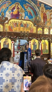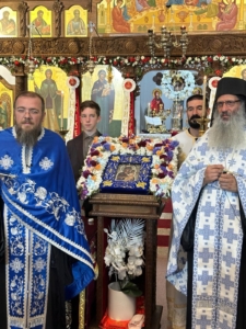 On Saturday, May 18, 2024, our church was honored to receive the miraculous icon of the Mother of God, known as the Hawaiian Icon or the Iverian Icon. This revered icon was officially recognized as such by the Russian Orthodox Church in 2008. With the blessings of our Metropolitan Timotej and Bishop George of the Russian Orthodox Church Outside of Russia, the icon was brought to our church. We are grateful to Father Nektarij, the icon’s keeper, for his assistance in ensuring the safe transportation of the icon. Father Gavril together with our parish priest Vlado and other Russian brother deacon performed Akathist in front of the icon. Numerous faithful brothers and sisters, including believers from the Macedonian Orthodox Church and other local churches, came to venerate the miraculous icon. We pray that God, through the intercessions of the Most Holy Bogorodica, will bestow His mercy upon us and grant us salvation.