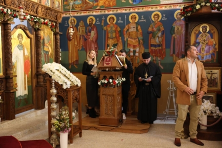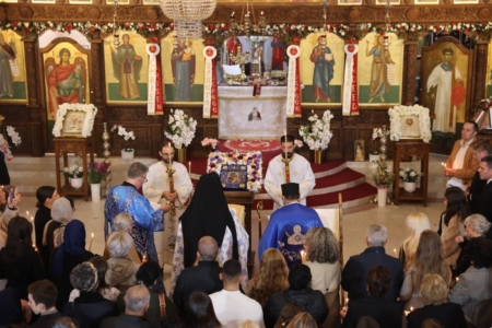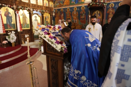Пред мироточивата икона акатист отслужија отец Гаврил (Галев), игумен на манастирот „Свети Климент Охридски“ во Мелбурн и парохискиот свештеник, отец Владо Недески.