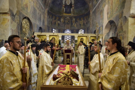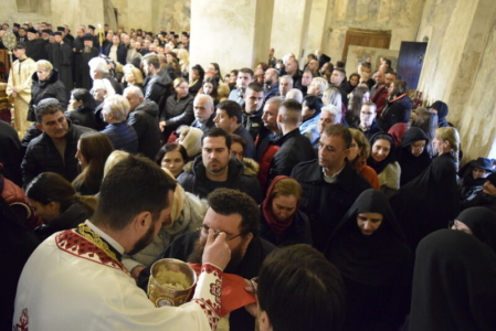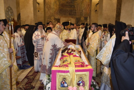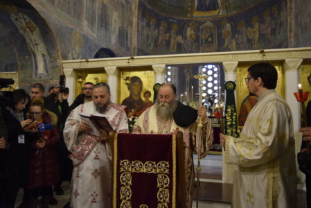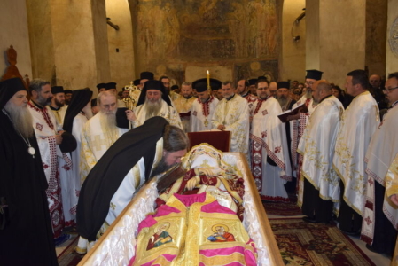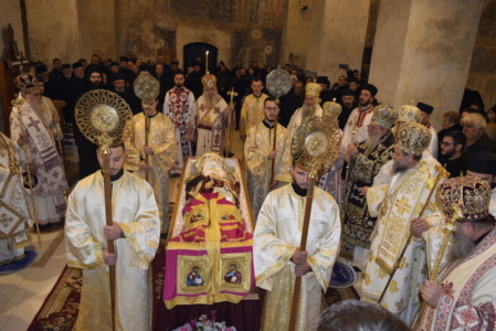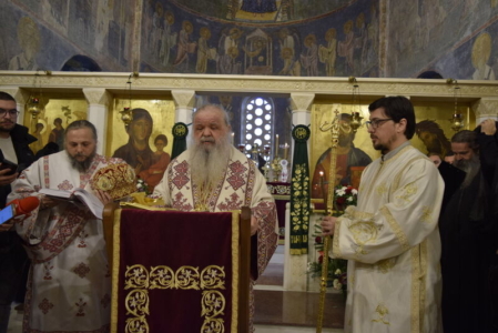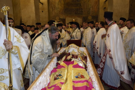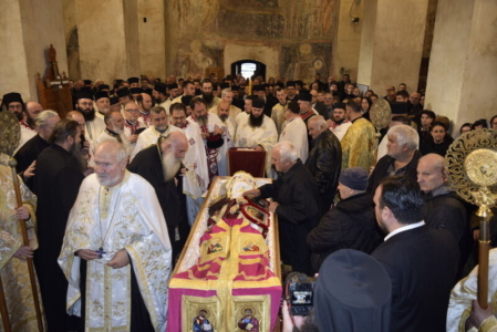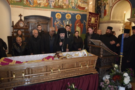 Во текот на денот повторно поминуваше верниот народ кај својот довчерашен духовен отец, а дојде и Неговото Високопреосвештенство Митрополитот на Корча г. Јован, од Албанската православна црква, кој отслужи Трисагија покрај телото на блаженоупокоениот Митрополит и се прости од него.