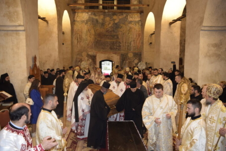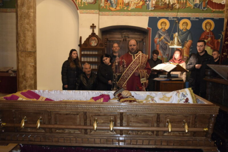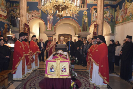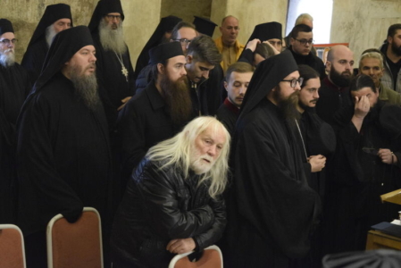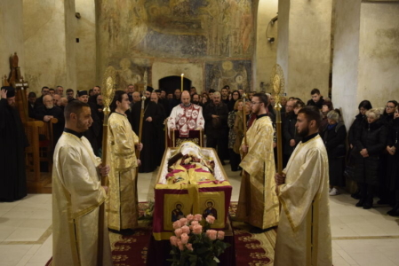И, повторно, малку се овие недостојни зборови за таков човек, кој од срце ја сакаше својата Црква и Татковината. Ете таков човек нашиот Спасител, Господ Исус Христос, на 25 ноември 2024 година, на денот кога го прославуваме споменот на св. Јован Милостив, на преп. Нил Синајски и на св. пророк Ахиј, повика при Себе. Еден од нашите отци веднаш ми забележа: „Отче, знаеш кој ден е денеска според стариот стил? Денеска е свети Климент“. Можеме слободно да кажеме дека и свети Климент сакал токму тогаш да го повика. Го повика блиску до себе, горе на небесата, а и ние долу на земјата, го положивме блиску до него, да се изразиме охридски: в комшии.