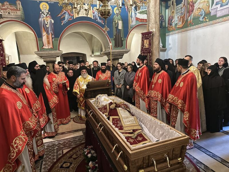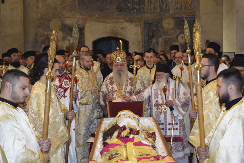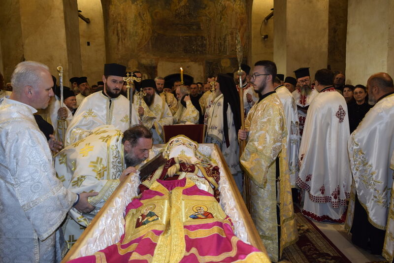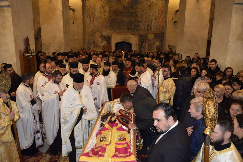 Во текот на денот повторно поминуваше верниот народ кај својот довчерашен духовен отец, а дојде и Неговото Високопреосвештенство Митрополитот на Корча г. Јован, од Албанската православна црква, кој отслужи Трисагија покрај телото на блаженоупокоениот Митрополит и се прости од него.