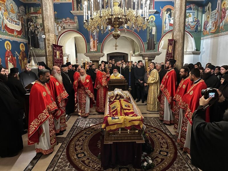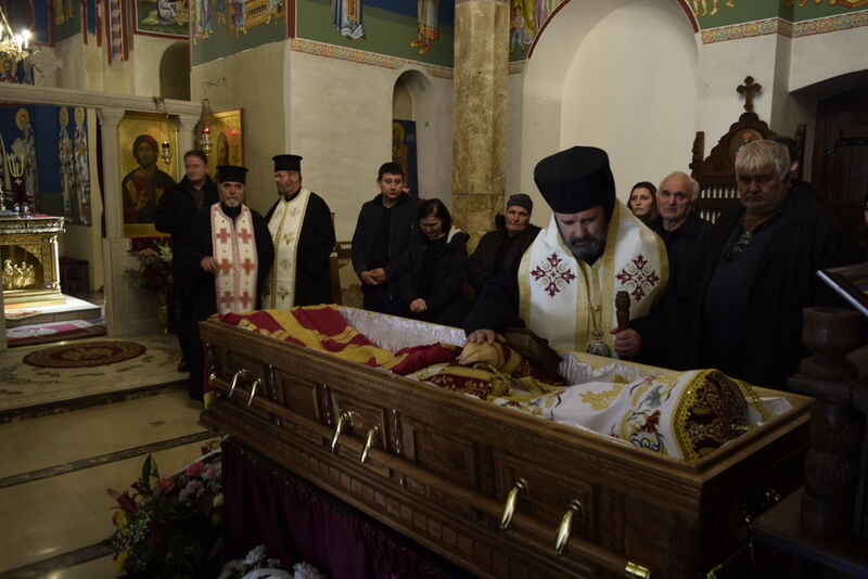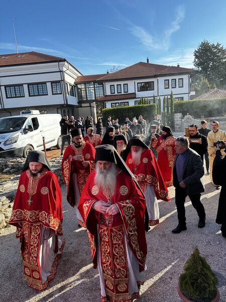 И, повторно, малку се овие недостојни зборови за таков човек, кој од срце ја сакаше својата Црква и Татковината. Ете таков човек нашиот Спасител, Господ Исус Христос, на 25 ноември 2024 година, на денот кога го прославуваме споменот на св. Јован Милостив, на преп. Нил Синајски и на св. пророк Ахиј, повика при Себе. Еден од нашите отци веднаш ми забележа: „Отче, знаеш кој ден е денеска според стариот стил? Денеска е свети Климент“. Можеме слободно да кажеме дека и свети Климент сакал токму тогаш да го повика. Го повика блиску до себе, горе на небесата, а и ние долу на земјата, го положивме блиску до него, да се изразиме охридски: в комшии.