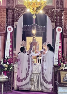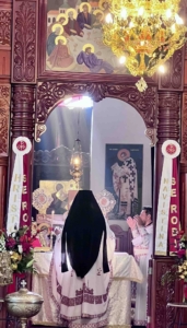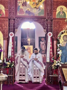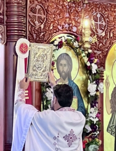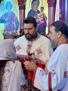 During the Divine Liturgy, the faithful received Holy Communion of the Holy Mysteries of Christ.