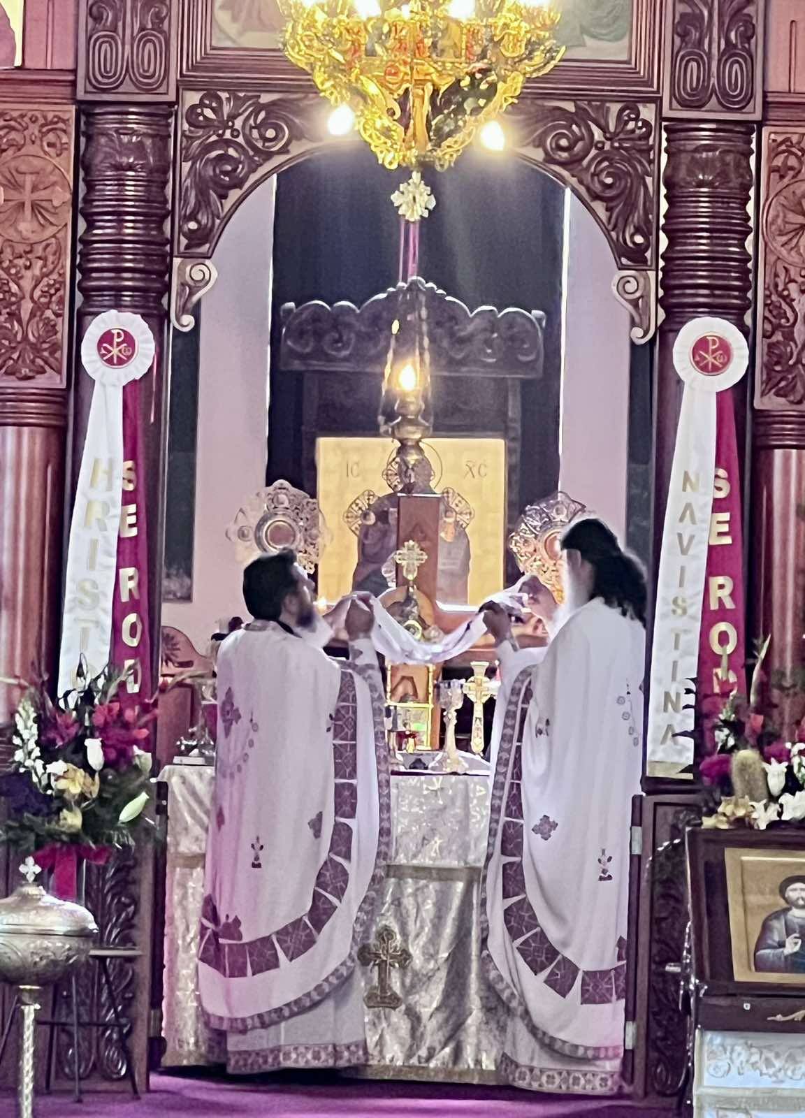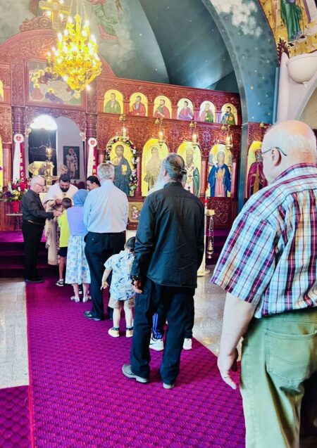 During the Divine Liturgy, the faithful received Holy Communion of the Holy Mysteries of Christ.