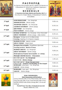 СООПШТЕНИЕ: РАСПОРЕД НА БОГОСЛУЖБИТЕ ЗА ВЕЛИГДЕНСКИТЕ ПРАЗНИЦИ 2017 ГОДИНА во храмот „Свети Никола “ – Перт, Западна Австралија