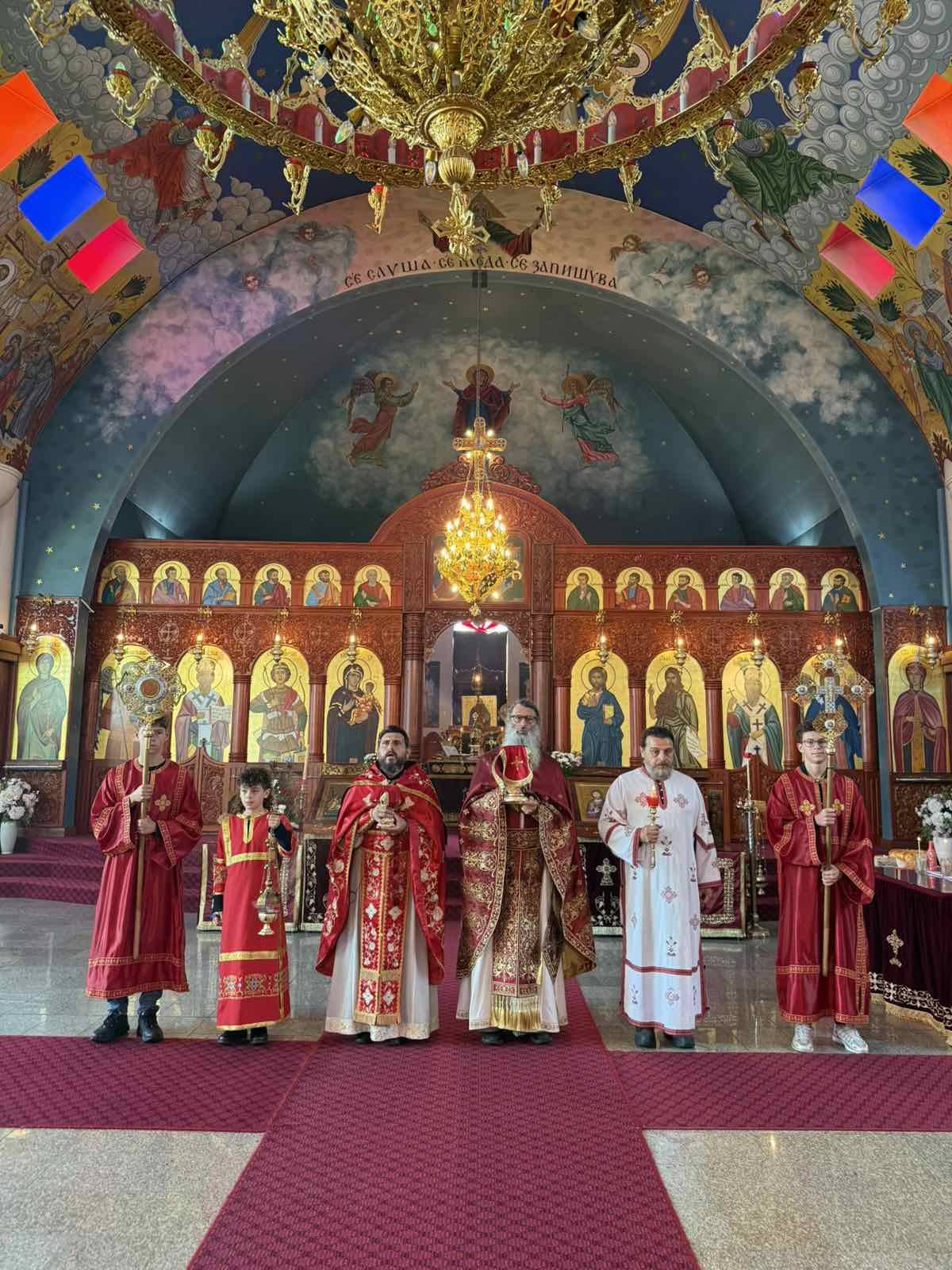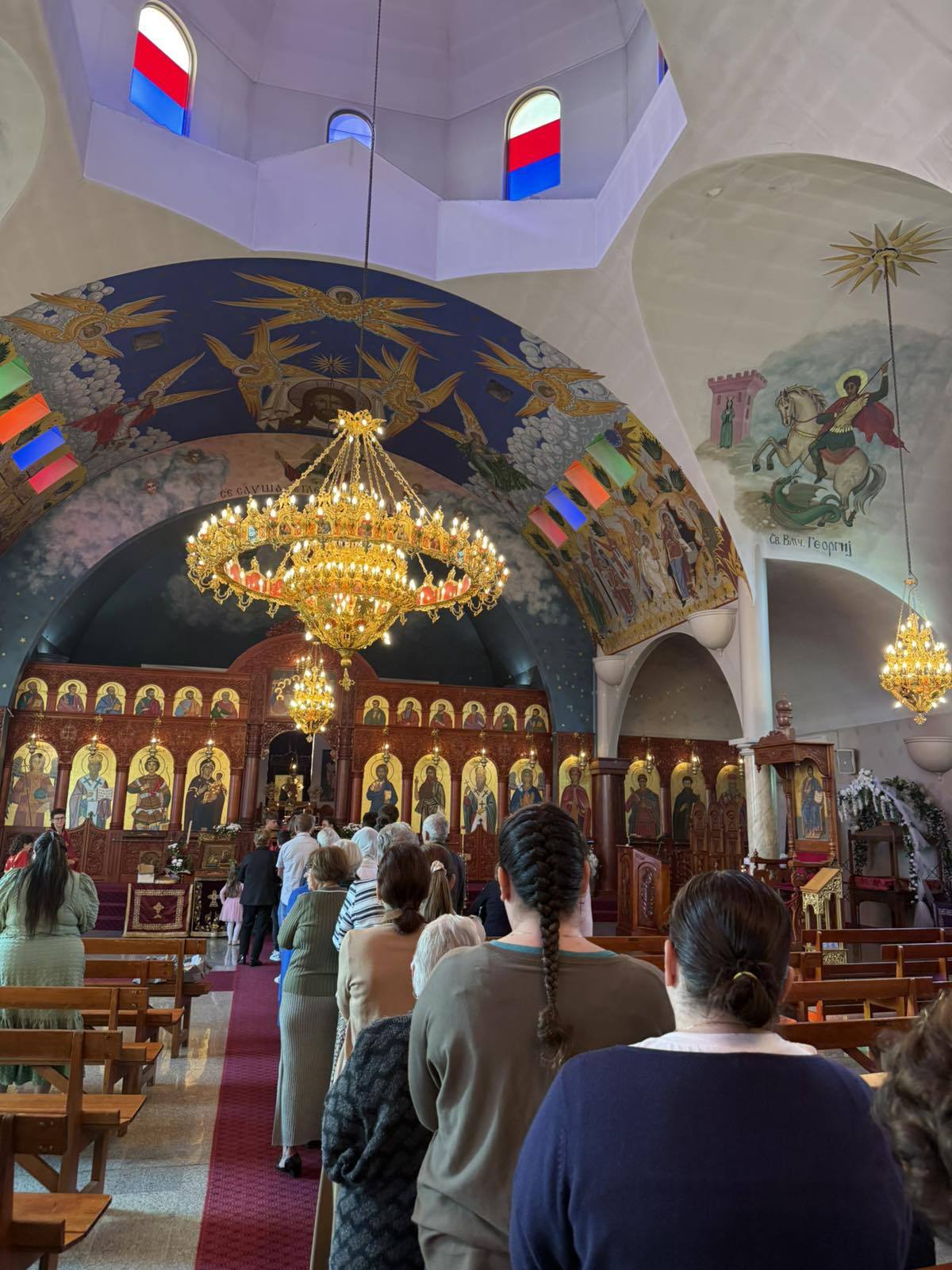 На 07. 04. 2026 година, кога Светата Црква го празнува празникот посветен на Благовештението на Пресвета Богородица, во црковната општина „Свети Георгиј и Пресвета Богородица“ во Епинг, отец Гаврил Галев во сослужение со старешината на храмот, јерејот Климент Станковски служеше Света Литургија.