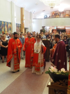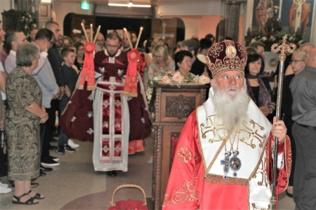 По завршувањето на богослужбата, Митрополитот Тимотеј се обрати кон верниците и им го честита празникот.