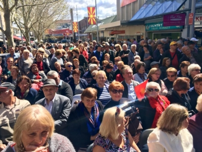Отакако беше прочитана телеграмата, свое излагање за големината на јубилеите одржа почитуваниот отец, Неговото преподобие игуменот Гаврил (Галев), кој во својот говор направи една историска рекапитулација со која на сите гости им стана јасна значајноста на настаните кои ги прославивме. (целосното обраќање на игуменот Гаврил можете да го прочитате на следниот линк: http://mpcaus.org/slovo-po-povod-proslavata-igumen-gavril/ ). Исто така свој говор одржа и заменик претседателот на Епархијата г. Љупчо Стефановски, кој говореше за голема улога, која ја одиграла дијаспората во овие значајни настани, како и за современите проблеми и предизвици. Потоа на присутните им се обрати и Неговата екселенција, Амбасадорот на Република Македонија во Австралија, г. Веле Трпевски кој истакна дека македонскиот народ е не покорен народ и затоа како таков повторно се изборил за самостојна црква и држава. Веднаш потоа започна богатата културно-уметничка и фолклорна програма со Културно уметничките друштва „Илинден“ од Сиднеј и „Млада Македонка“ од Волонгонг. Свој настап пред присутните имаше и Диана Трајковски – професионален музичар, изведувач и професор по удирачки инструменти, која настапи како соло артист, преставувајќи се со едно македонско традиционално дело, кое се вика Касапско оро од виртуозот Тале Огненовски.