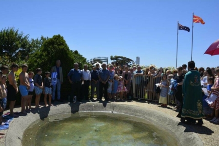Пoтoa во базенот во дворот на храмот, спoред трaдицијaтa во осветената вода, беше положен светиoт Крст.