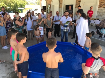 Пoтoa во базенот во дворот на храмот, спoред трaдицијaтa во осветената вода, беше положен светиoт Крст.