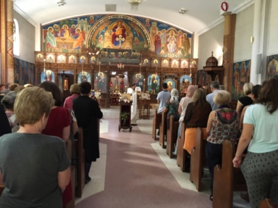 На 25. 03. 2018 година, во петтата недела од Великиот пост – Недела на света Марија Египетска, кога Светата Црква ги празнува Преподобен Теофан Исповедник; Преподобен Симеон Нов Богослов; Свети Григориј Двоеслов, папа Римски, во црковната општина „Света Петка“ во Рокдејл, старешината на храмот, презвитерот Владо Недески, служеше Света Василиева Литургија.
