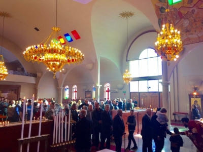 На . 02. 07. 2017 година, во 4-та Недела по Педесетница, кога го празнуваме споменот на свети апостол Јуда, преп. Пајсиј Велики, свети маченик Зосим, преп. Јован Отшелник и свети Јован Шангајски, во црковната општина „Свети Георгиј и Пресвета Богородица“ во Епинг, старешината на храмот, јерејот Климент Станковски служеше Света Златоустова Литургија.