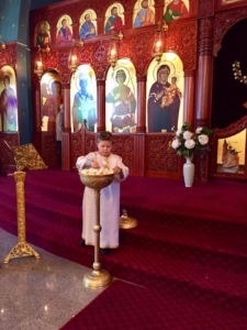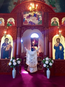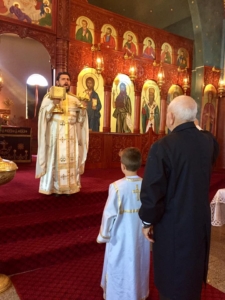 На 15. 10. 2017 година, во 19-тата недела по Педесетница кога го празнуваме споменот на свети Андреј Јуродив; светиот свештеномаченик Кипријан и девицата Јустина и светите маченици Давид и Константин, во црковната општина „Свети Георгиј и Пресвета Богородица“ во Епинг, старешината на храмот, јерејот Климент Станковски служеше Света Златоустова Литургија.
