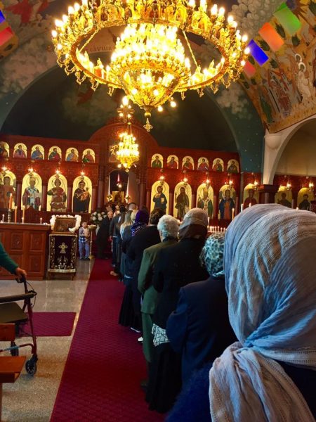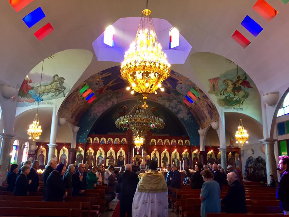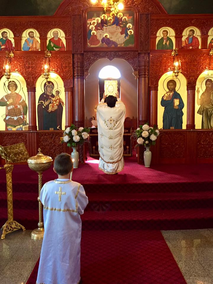На 15. 10. 2017 година, во 19-тата недела по Педесетница кога го празнуваме споменот на свети Андреј Јуродив; светиот свештеномаченик Кипријан и девицата Јустина и светите маченици Давид и Константин, во црковната општина „Свети Георгиј и Пресвета Богородица“ во Епинг, старешината на храмот, јерејот Климент Станковски служеше Света Златоустова Литургија.