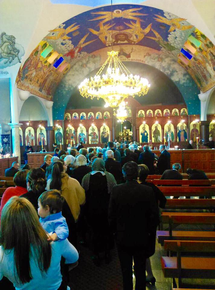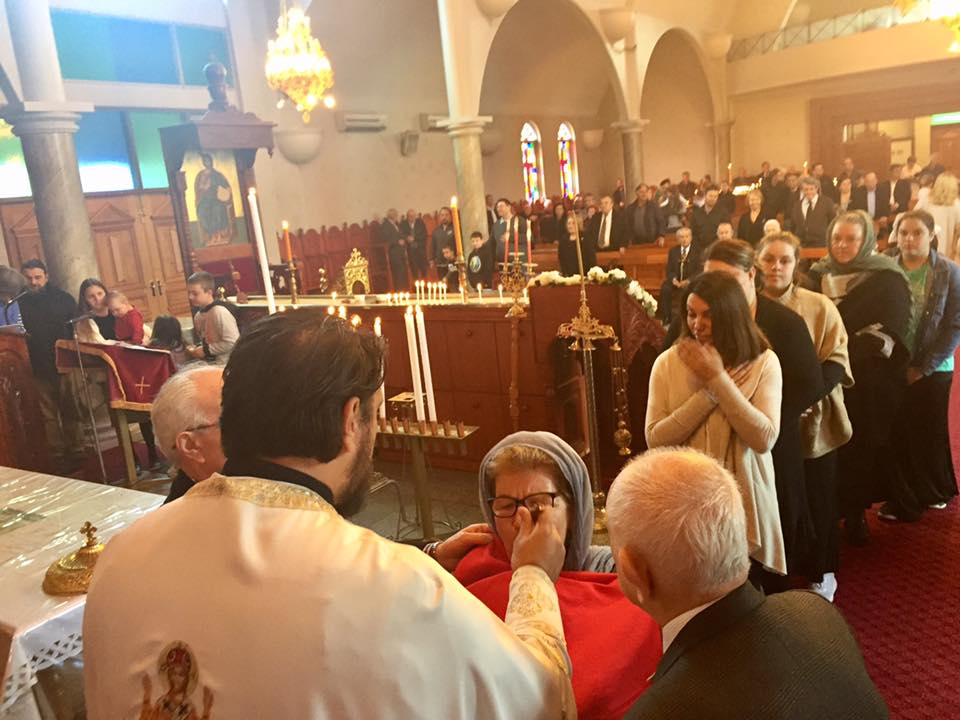 На 22. 10. 2017 година, во 20-тата недела по Педесетница кога го празнуваме споменот на светиот апостол Јаков; преподобниот Андроник и неговата сопруга Анастасија; светите праведни Авраам и Лот; свети Димитриј, патријарх Александриски; свети Стефан, деспот српски, во црковната општина „Свети Георгиј и Пресвета Богородица“ во Епинг, старешината на храмот, јерејот Климент Станковски служеше Света Златоустова Литургија.