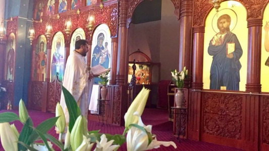 На 29. 10. 2017 година, во 21-тата недела по Педесетница кога го празнуваме споменот на светиот маченик Лонгин и на преподобниот Лонгин Трудољубивиот, во црковната општина „Свети Георгиј и Пресвета Богородица“ во Епинг, старешината на храмот, јерејот Климент Станковски служеше Света Златоустова Литургија.
