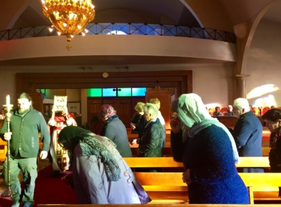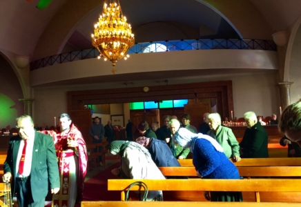 На 11. 06. 2017 година, во 1-та Недела по Педесетница (на Сите Светии), кога го празнуваме споменот на Првиот Вселенски собор; светата маченичка Теодосија Тирска; преподобната маченичка Теодосија; свети Александар, епископ Александриски; светиот маченик Нан (Јован) Солунски и падот на Цариград, во црковната општина „Свети Георгиј и Пресвета Богородица“ во Епинг, старешината на храмот, јерејот Климент Станковски служеше Света Златоустова Литургија.