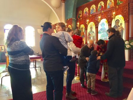 На 11. 06. 2017 година, во 1-та Недела по Педесетница (на Сите Светии), кога го празнуваме споменот на Првиот Вселенски собор; светата маченичка Теодосија Тирска; преподобната маченичка Теодосија; свети Александар, епископ Александриски; светиот маченик Нан (Јован) Солунски и падот на Цариград, во црковната општина „Свети Георгиј и Пресвета Богородица“ во Епинг, старешината на храмот, јерејот Климент Станковски служеше Света Златоустова Литургија.