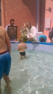 Пoтoa во базенот во дворот на храмот, спoред трaдицијaтa во осветената вода, беше положен светиoт Крст.