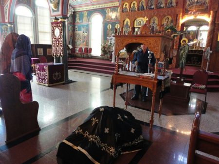 На 14. 04. 2017 година, во светиот и Велики Петок од Страсната седмица, во црковната општина „Свети Никола“ во Перт, старешината на храмот, протојереј Станко Јовановски отслужи Царски часови и Вечерна богослужба, на која символично се соврши симнувањето од Крст и положувањето во Гроб на Христовото Пречисто Тело.