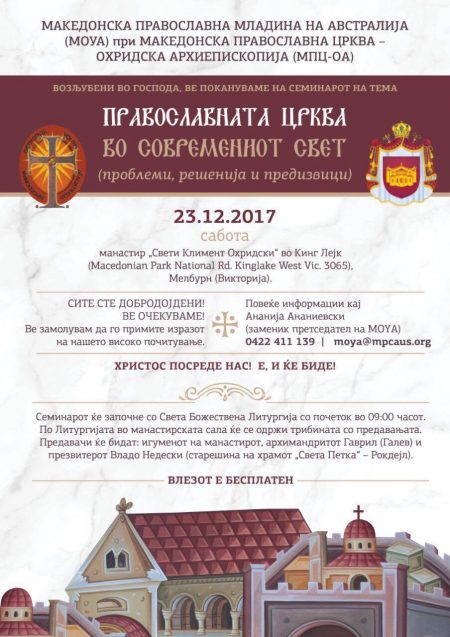 IMPORTANT NOTICE The countdown begins. MOYA Seminar 2025 — Young & Orthodox: Living the Faith Today The Macedonian Orthodox Youth of Australia (MOYA) warmly invites you to this year’s annual seminar, held at St Clement of Ohrid Monastery, Kinglake West. Join us for a spiritually enriching day designed to inspire reflection, connection, and growth in faith. The program will feature moments of prayer, meaningful talks, and interactive sessions — all …