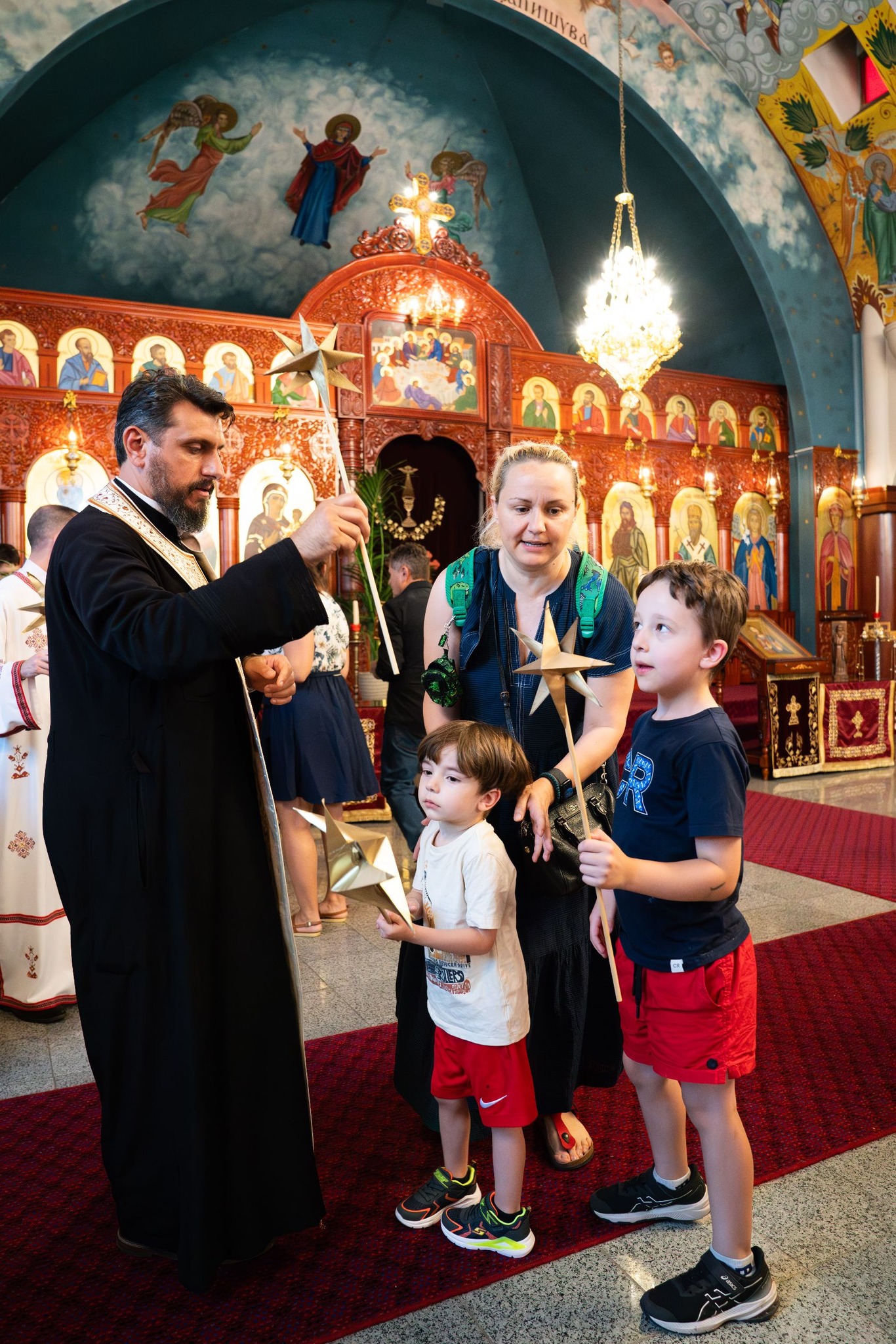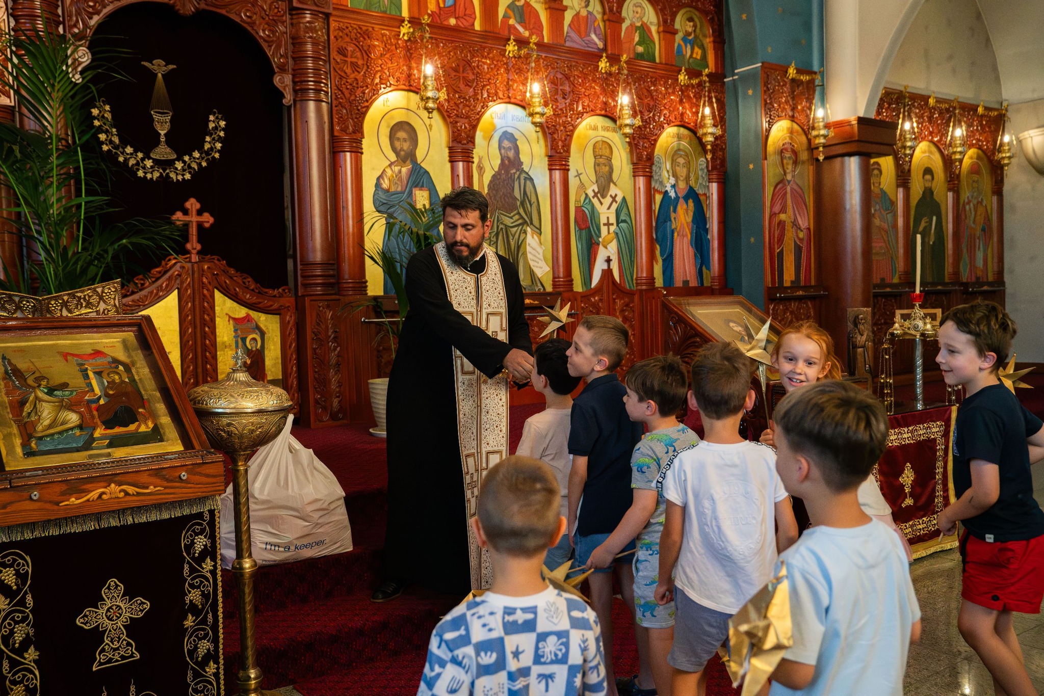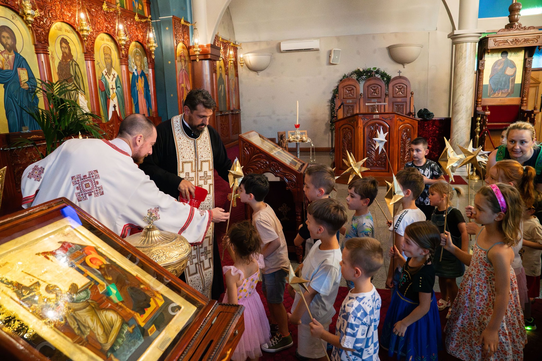 После богослужбата беше изврешена литија на која учествуваа голем број млади македончиња на кои им беа поделен божикни пакетчиња.