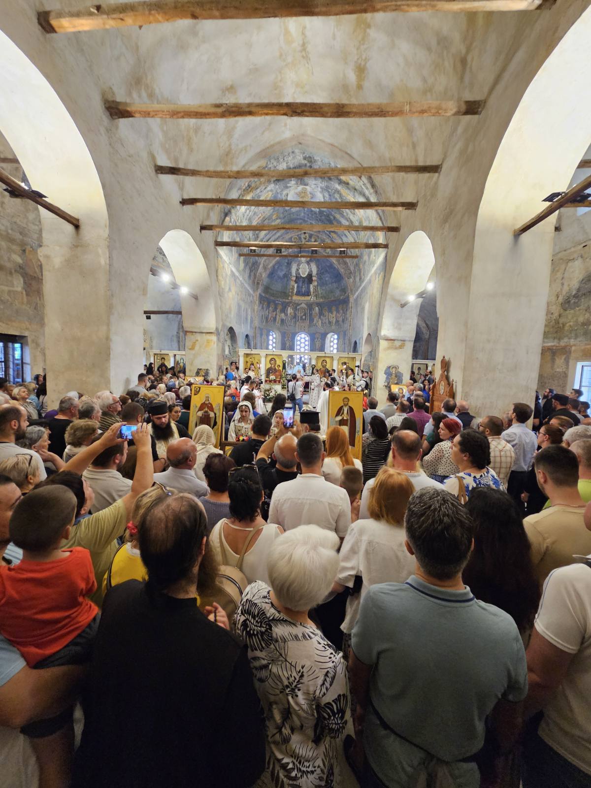 На светата архијерејска Литургија, на која чиноначалствуваше Неговото Блаженство Архиепископот Охридски и Македонски и на Јустинијана Прима г. г. Стефан сослужуваа и високи гости од сестринските православни цркви: Високопреосвештениот Митрополит Старозагорски г. Кипријан од Бугарската православна црква и Преосвештениот Епископ Нишки г. Арсениј од Српската Православна Црква.
