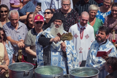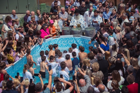 Пoтoa во базенот во дворот на храмот, спoред трaдицијaтa во осветената вода, беше положен светиoт Крст.