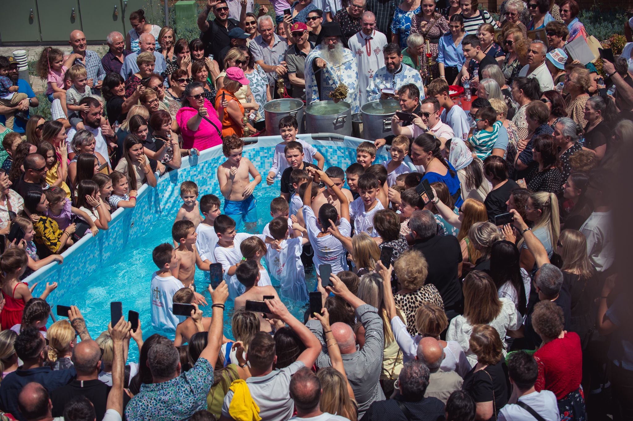 Пoтoa во базенот во дворот на храмот, спoред трaдицијaтa во осветената вода, беше положен светиoт Крст.
