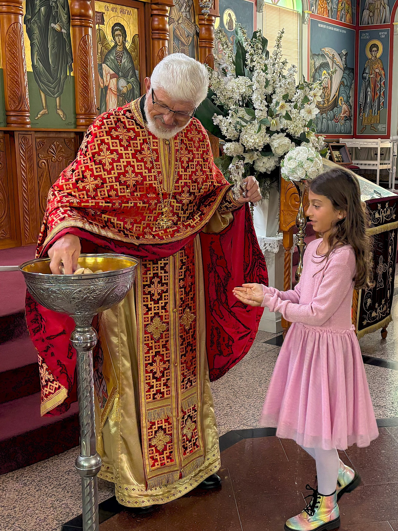 At the Divine Liturgy, the faithful partook of the Holy Mysteries of Christ.
