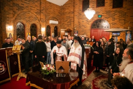 На 08. 08. 2025, во предвечерието на празникот посветен на Свети Климент Охридски, во манастирот „Свети Климент Охридски“ во Кинг Лејк, игуменот на манастирот, отецот Гаврил (Галев) во сослужение на ерејот Климент Станковски отслужи Вечерна богослужба, со што започна торжественото празнување на манастирската слава.