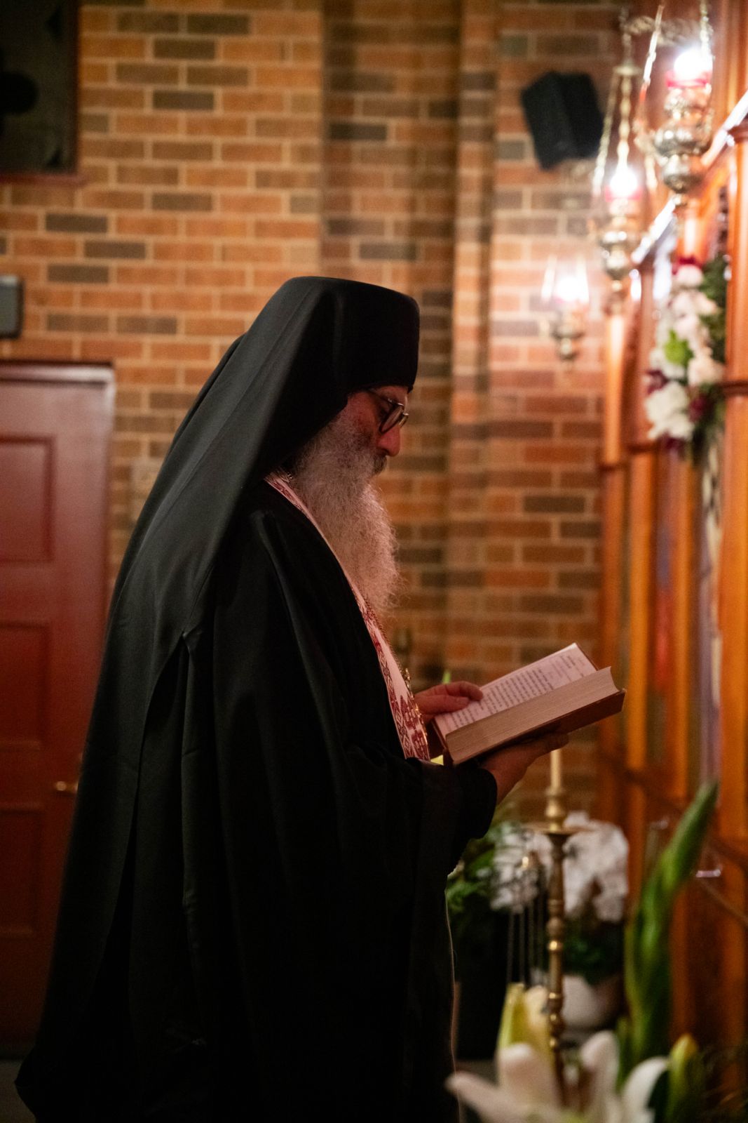 На 08. 08. 2025, во предвечерието на празникот посветен на Свети Климент Охридски, во манастирот „Свети Климент Охридски“ во Кинг Лејк, игуменот на манастирот, отецот Гаврил (Галев) во сослужение на ерејот Климент Станковски отслужи Вечерна богослужба, со што започна торжественото празнување на манастирската слава.