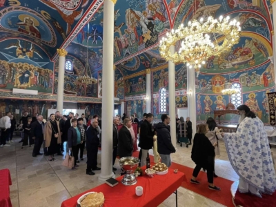 По Светата Литургија беа прекршени славските лебови и беше приредена трпеза по повод чествувањето на храмовиот празник.