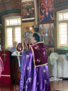 На 02. 03. 2025, во Неделата на Адамовото изгонување од рајот (Сиропусна или Недела на простувањето), кога Светата Црква го празнува споменот на – Светиот великомаченик Теодор Тирон; Преподобниот Теодосиј Бугарин и неговиот ученик Роман; Света Маријамна (Марија) – Прочка, во црковната општина „Раѓање на Пресвета Богородица“ во Бризбејн, старешината на храмот, протојерејот Ѓорѓи Митев служеше Света Златоустова Литургија.