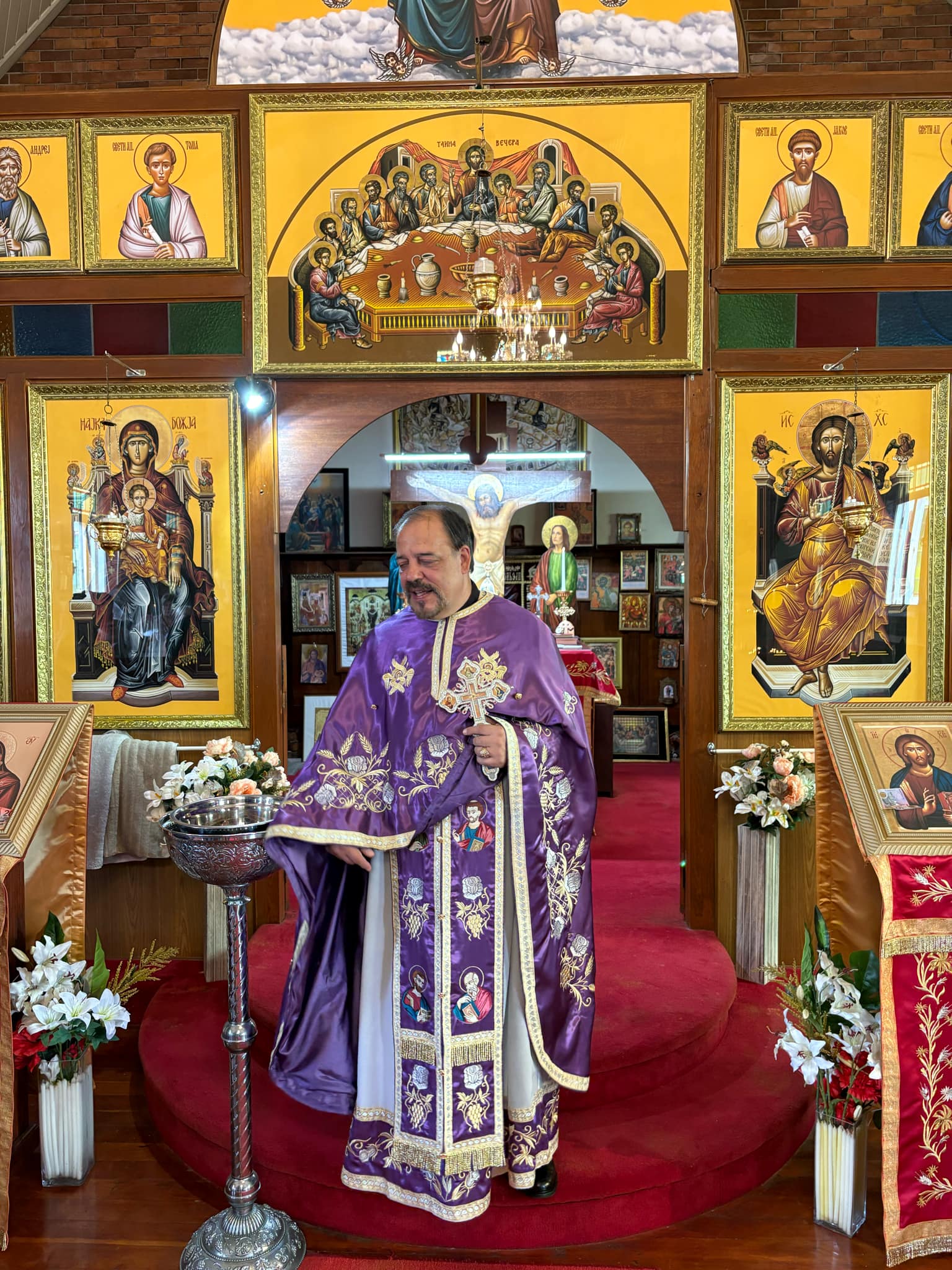 На 02. 03. 2025, во Неделата на Адамовото изгонување од рајот (Сиропусна или Недела на простувањето), кога Светата Црква го празнува споменот на – Светиот великомаченик Теодор Тирон; Преподобниот Теодосиј Бугарин и неговиот ученик Роман; Света Маријамна (Марија) – Прочка, во црковната општина „Раѓање на Пресвета Богородица“ во Бризбејн, старешината на храмот, протојерејот Ѓорѓи Митев служеше Света Златоустова Литургија.