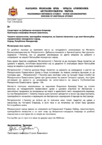 Македонскиот народ заедно со членовите на Епархискиот Управен Одбор, свештенството, преподобното монаштво и со сиот клир од Автралиско-сиднејската епархија се длабоко ожалостени и постојано ќе го имаме во молитвите.