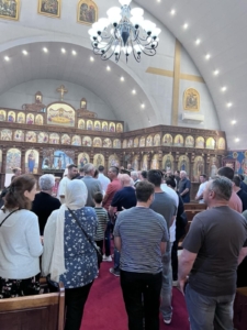 На 25. 12. 2024 година, кога се празнува споменот на Свети Спиридон, епископ Тримифунтски, во МПЦО „Успение на Пресвета Богородица“ во Сиденхам, отец Гаврил (Галев) во сослужение на старешината на храмот протојереј – ставрофор Ефтим Бетински и на ерејот Климент Станковски и на о. Јован Димитров од РЗПЦ отслужи Света божествена Литургија.